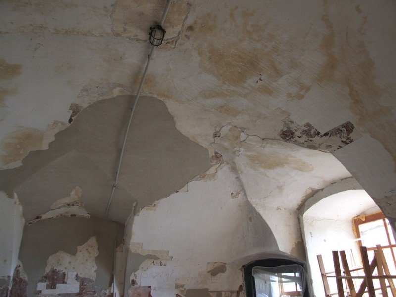 La interior, încăperile încă mai păstrează o parte din numeroasele decorațiuni murale originale (distruse în cazul celor mai multe reședințe nobiliare), descoperite cu ocazia înlăturării parțiale a straturilor de tencuială și cercetate în două etape (1998-1999, 2003). Odată cu îndepărtarea molozului din subsol s-au descoperit piese de stucatură, decorațiuni din piatră, cahle și piese de ceramica habană.
